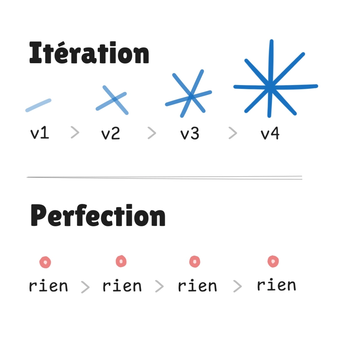 C’est pareil avec une idée de vidéo, de post, de projet : tu la publies en version brute, tu observes les retours, tu ajustes, tu recommences. Chaque version te rapproche de quelque chose de plus solide, plus impactant. C’est l’itération qui fait grandir ton idée.