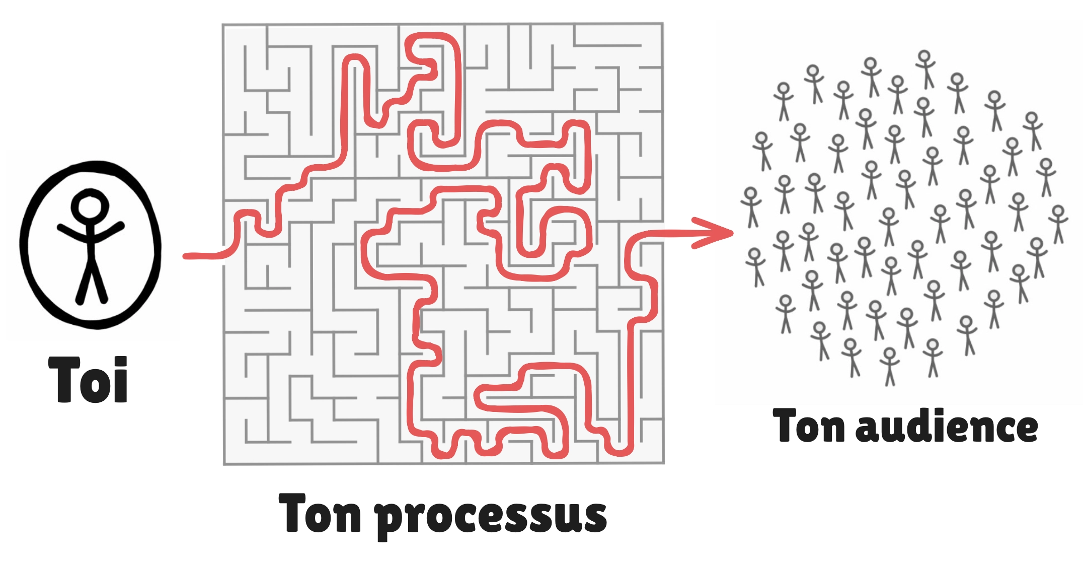 Publier du contenu, c’est comme lancer un produit. Ton idée ne doit pas être parfaite du premier coup. Tu lances un MVP (Minimum Viable Product) de ton idée — une première version imparfaite mais fonctionnelle, juste pour la confronter au marché.